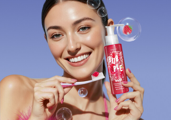Feel happy with Bubble White toothpastes! Gentle whitening gives you a snow-white smile, and fruity flavors energize and lift your mood for the whole day!